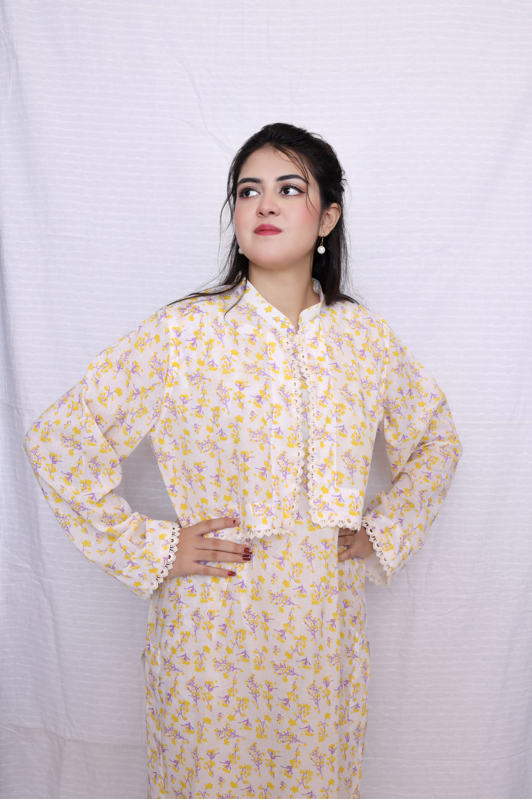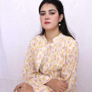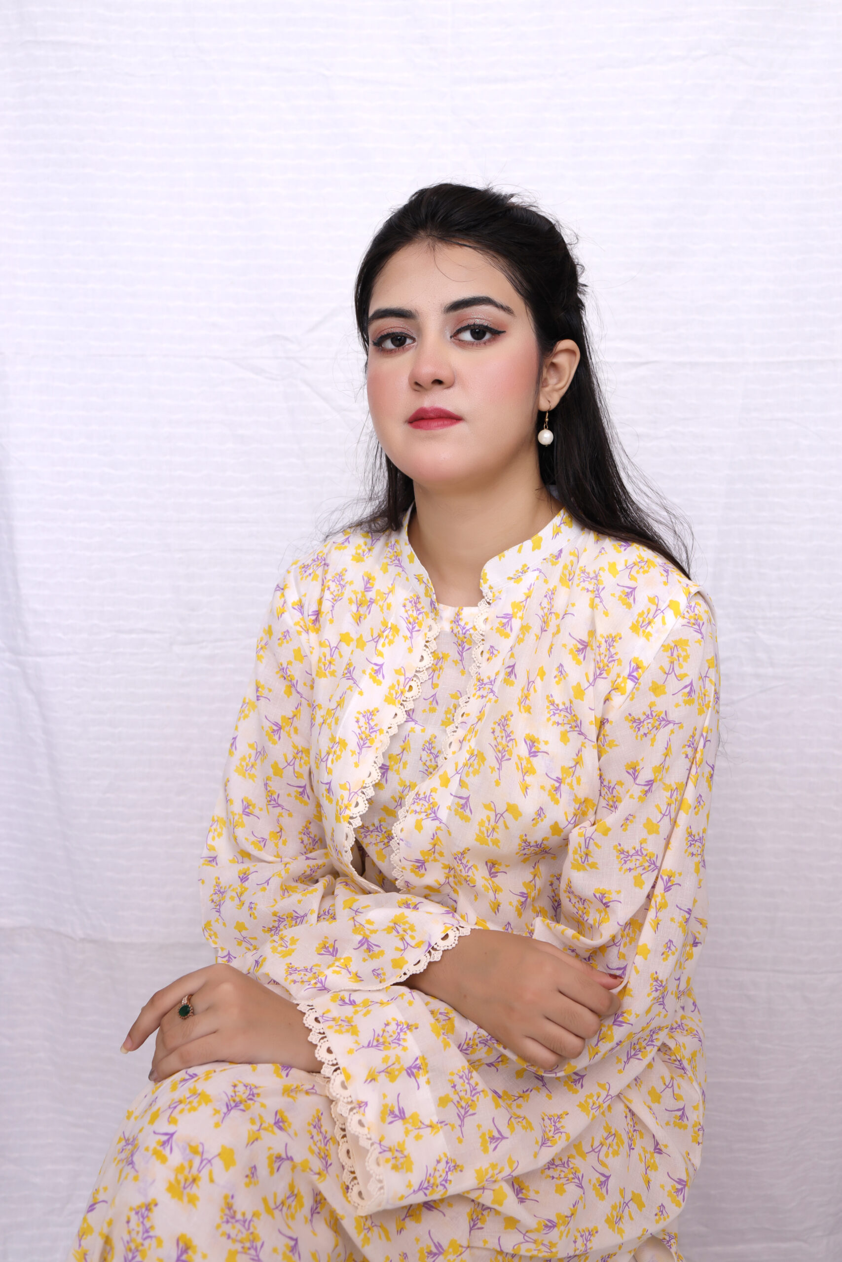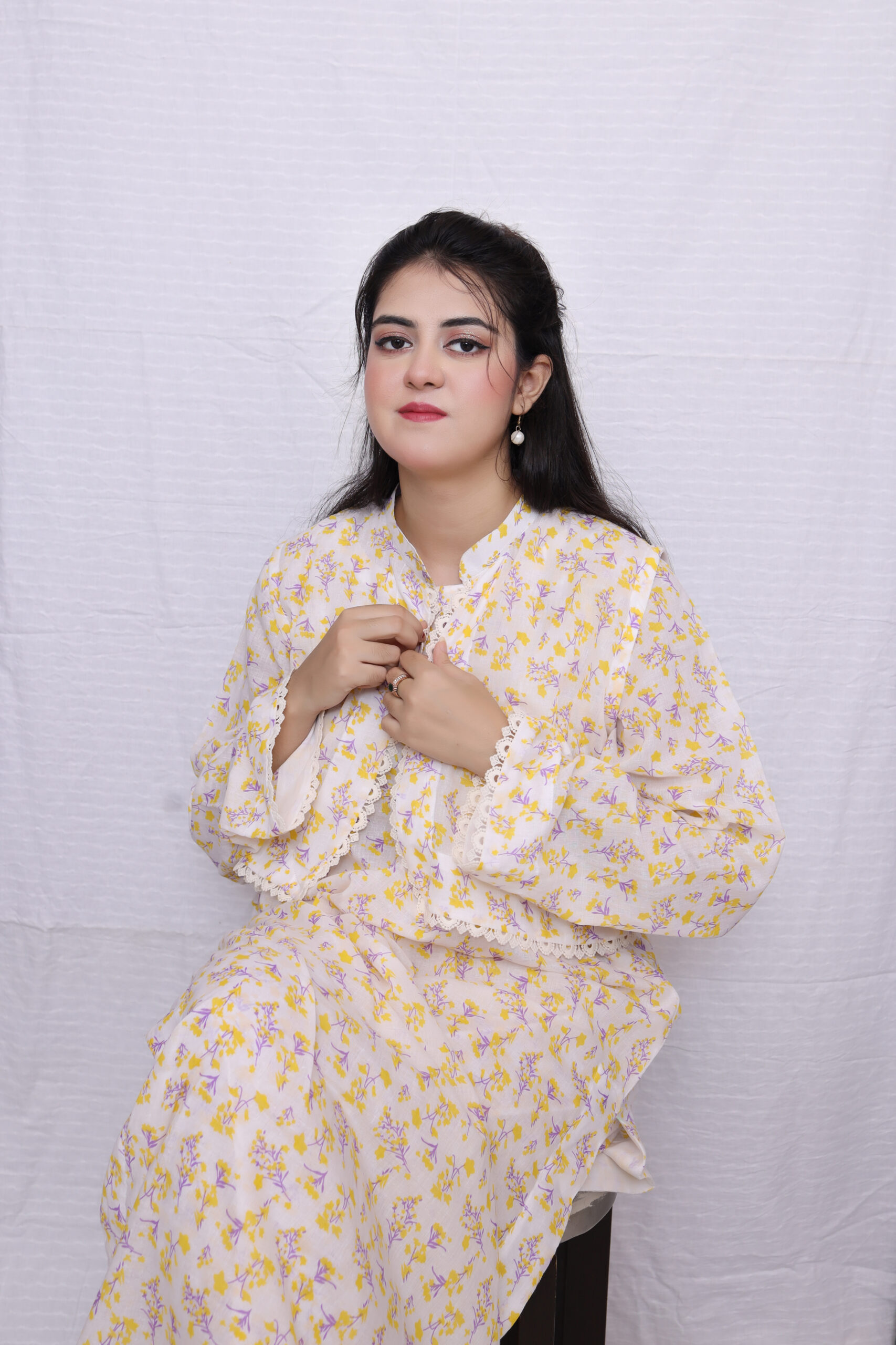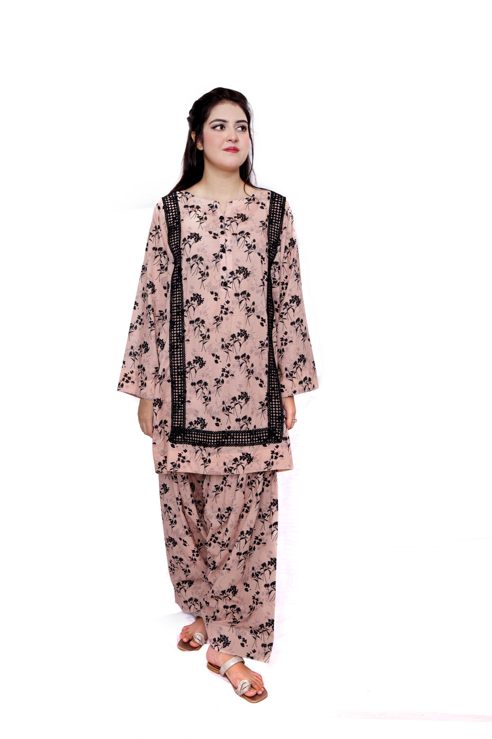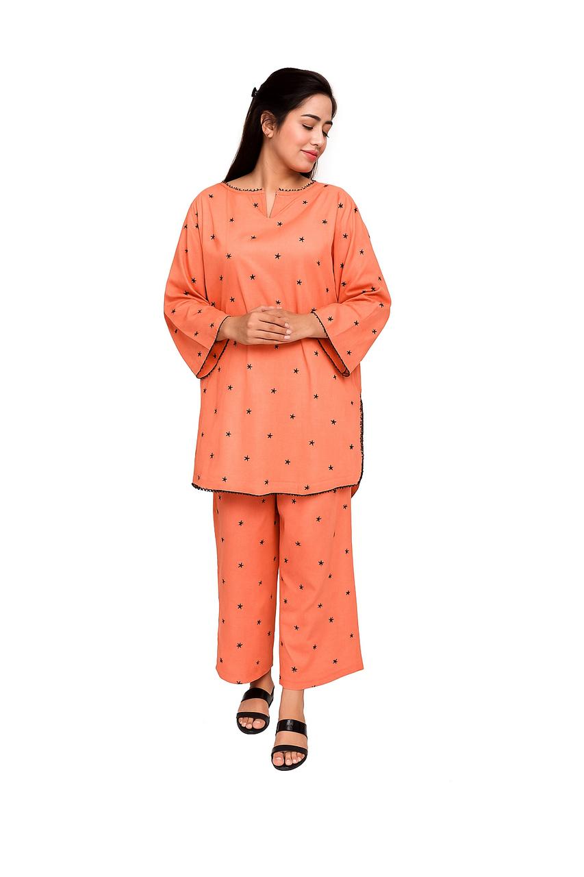 Orange 2 PIECE-PRINTED LAWN SUIT