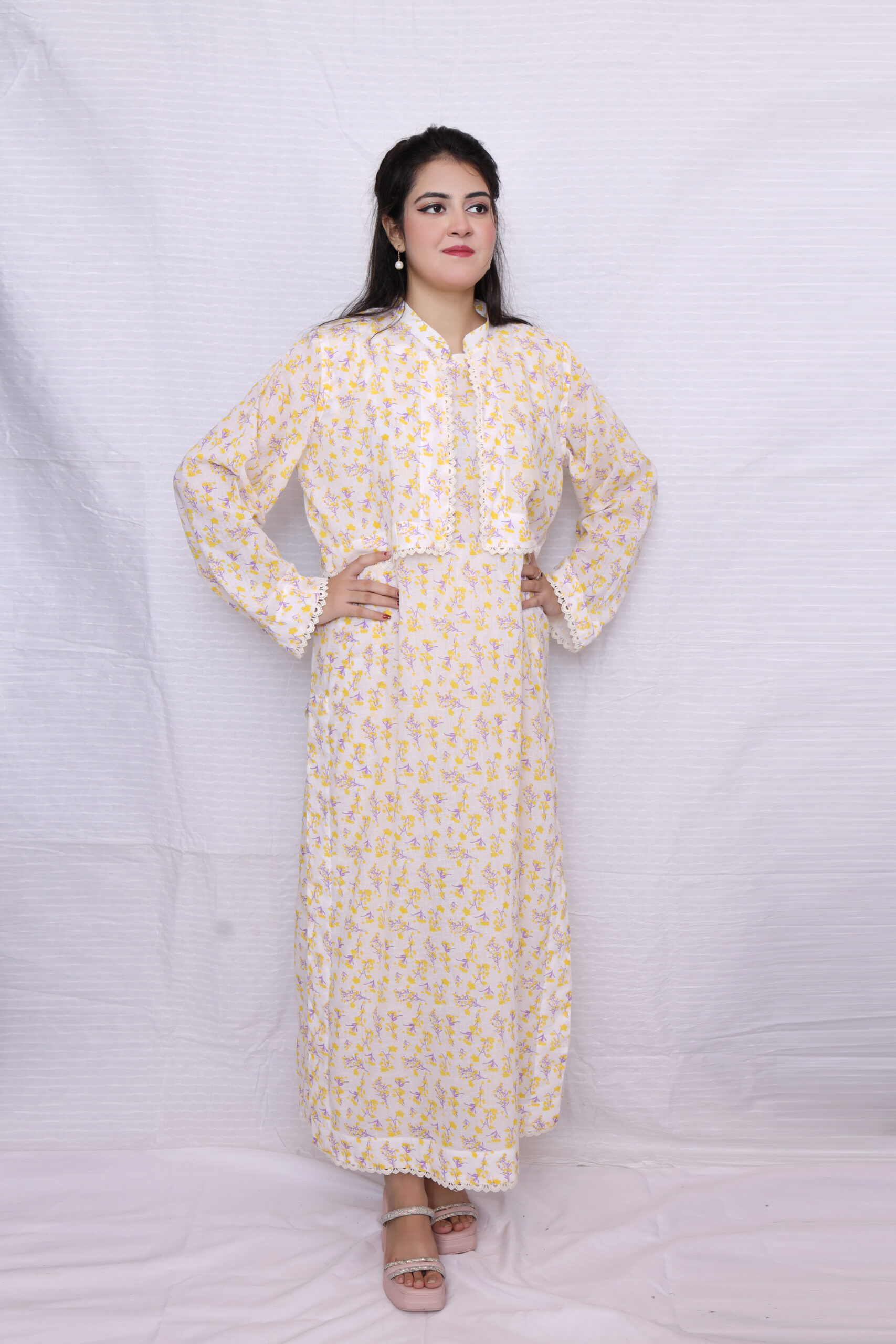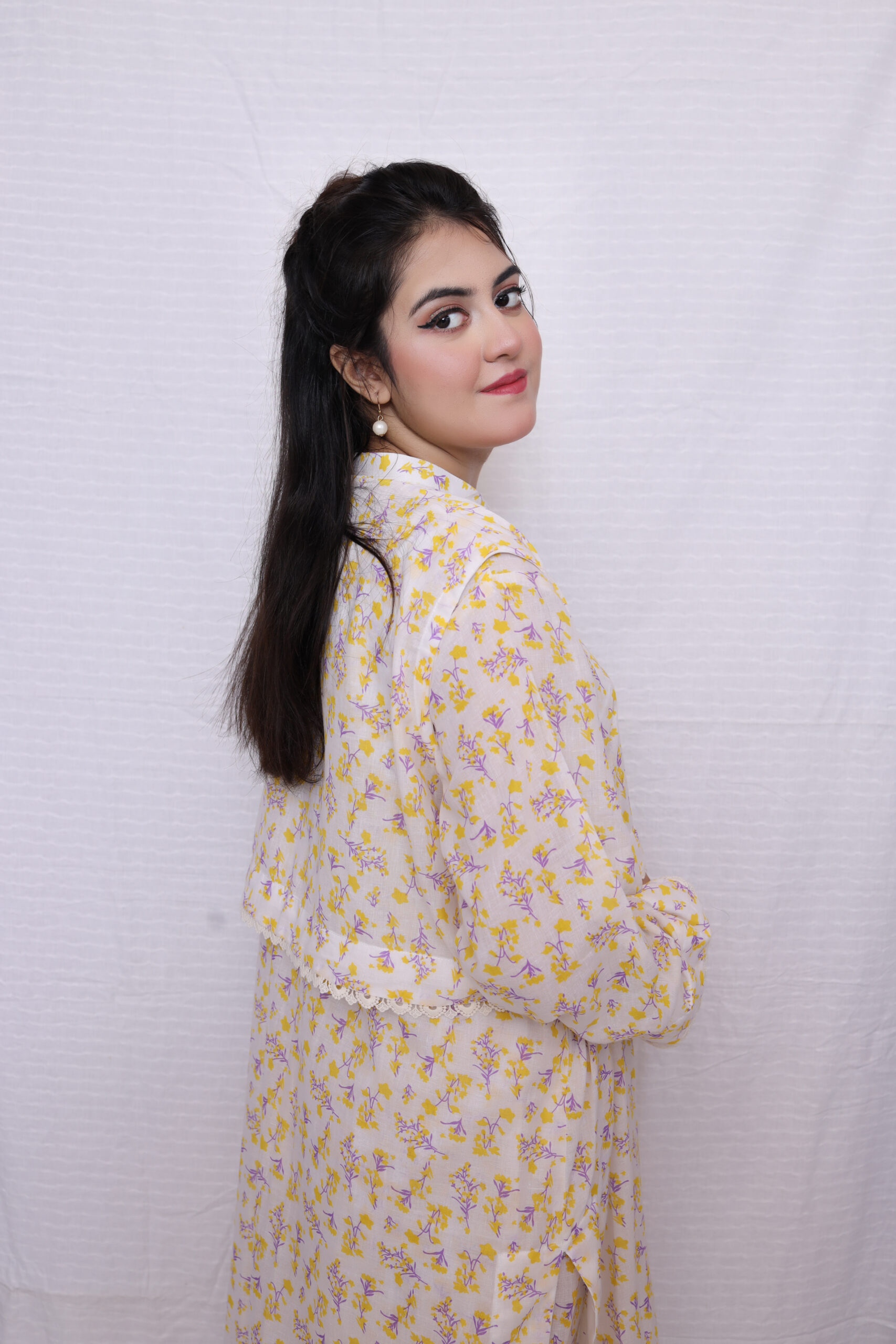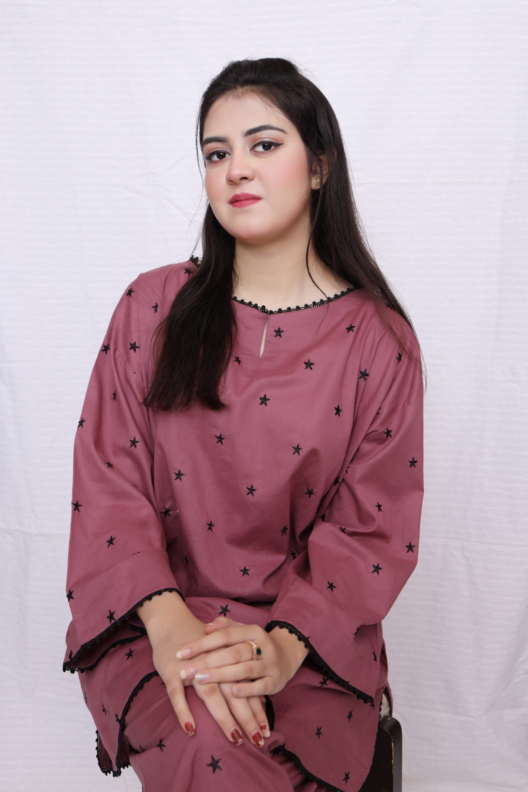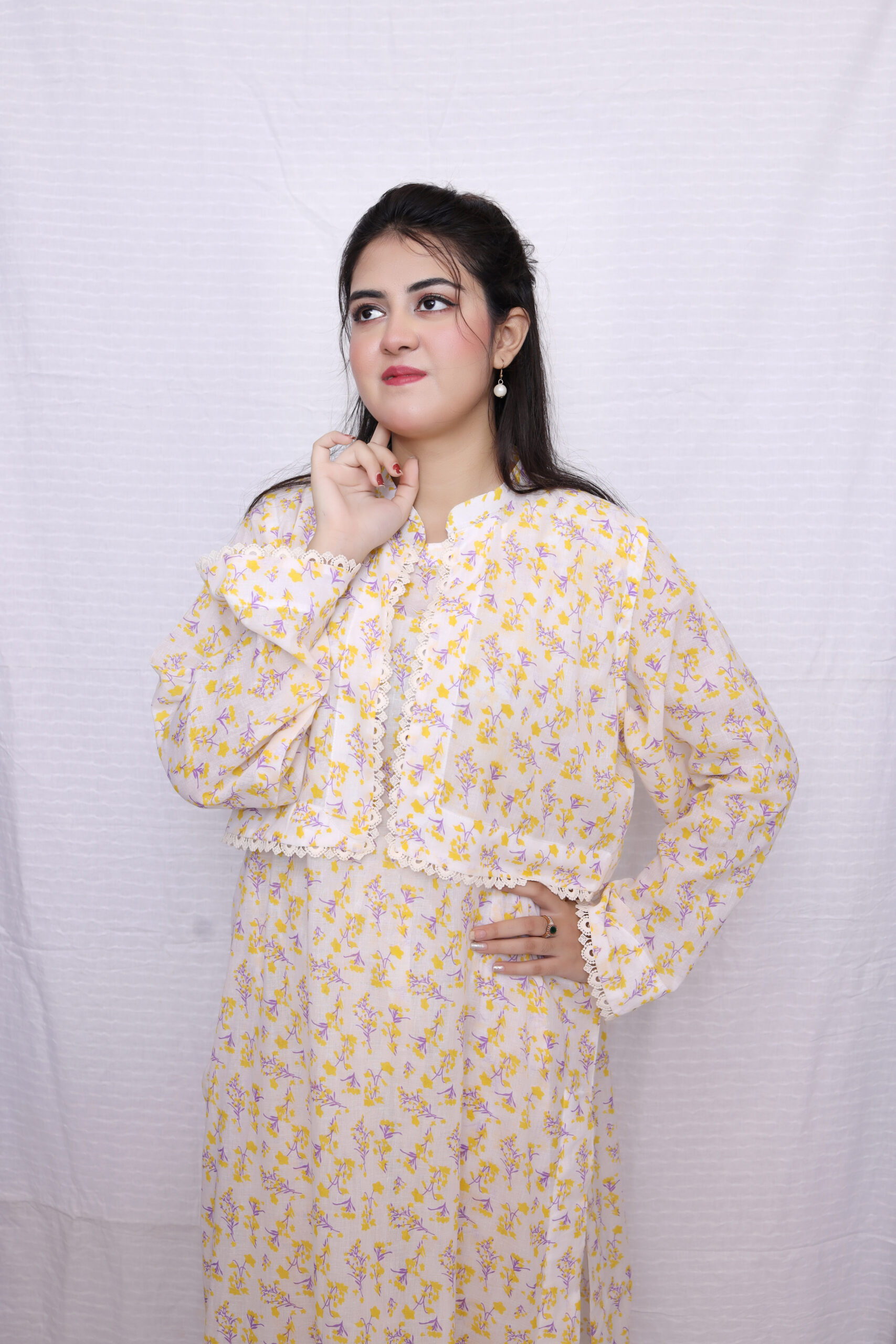 Orange 2 PIECE-PRINTED LAWN SUIT