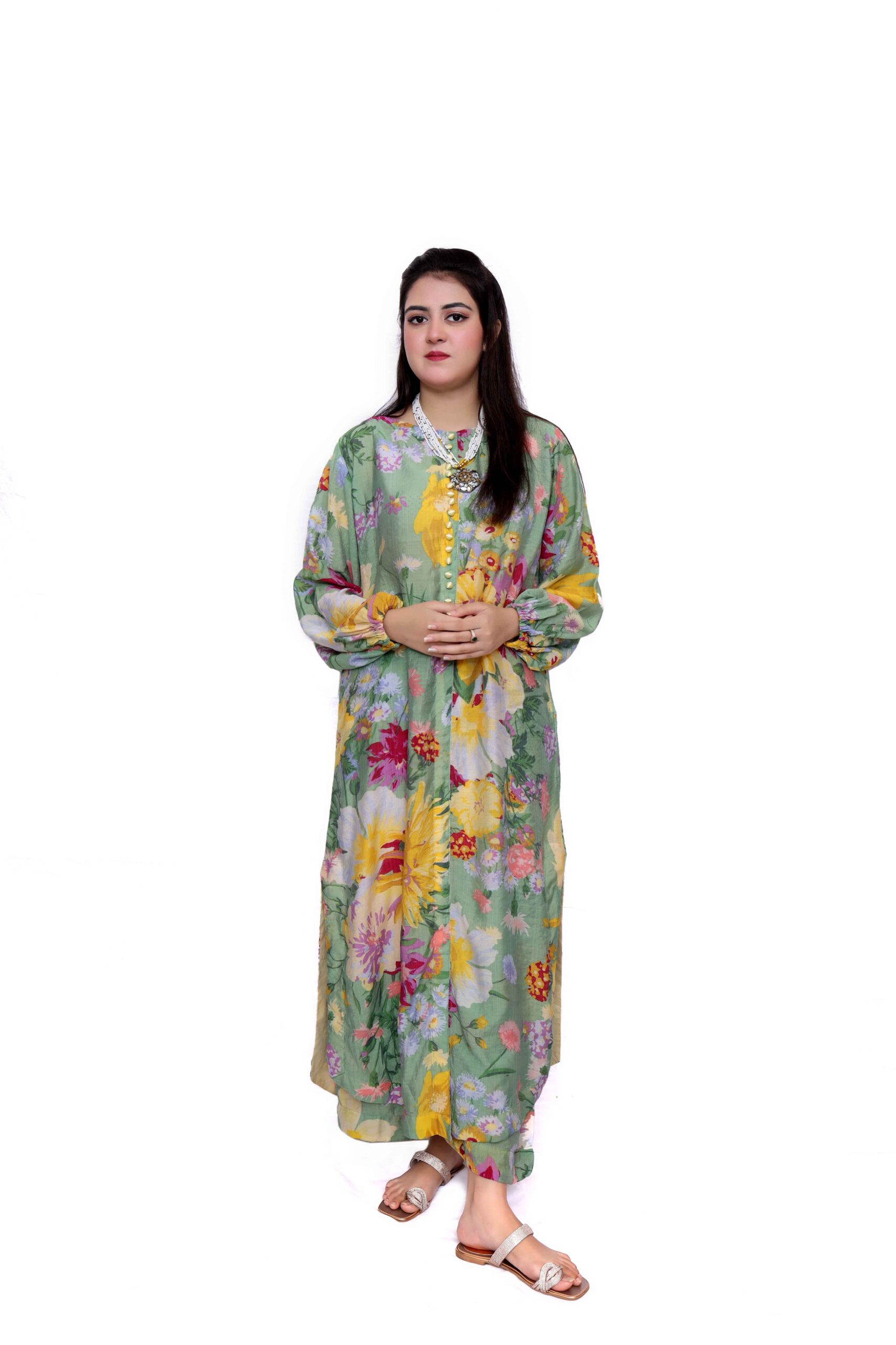 Olive 3-Piece Pure Korean Silk Full-Length Dress