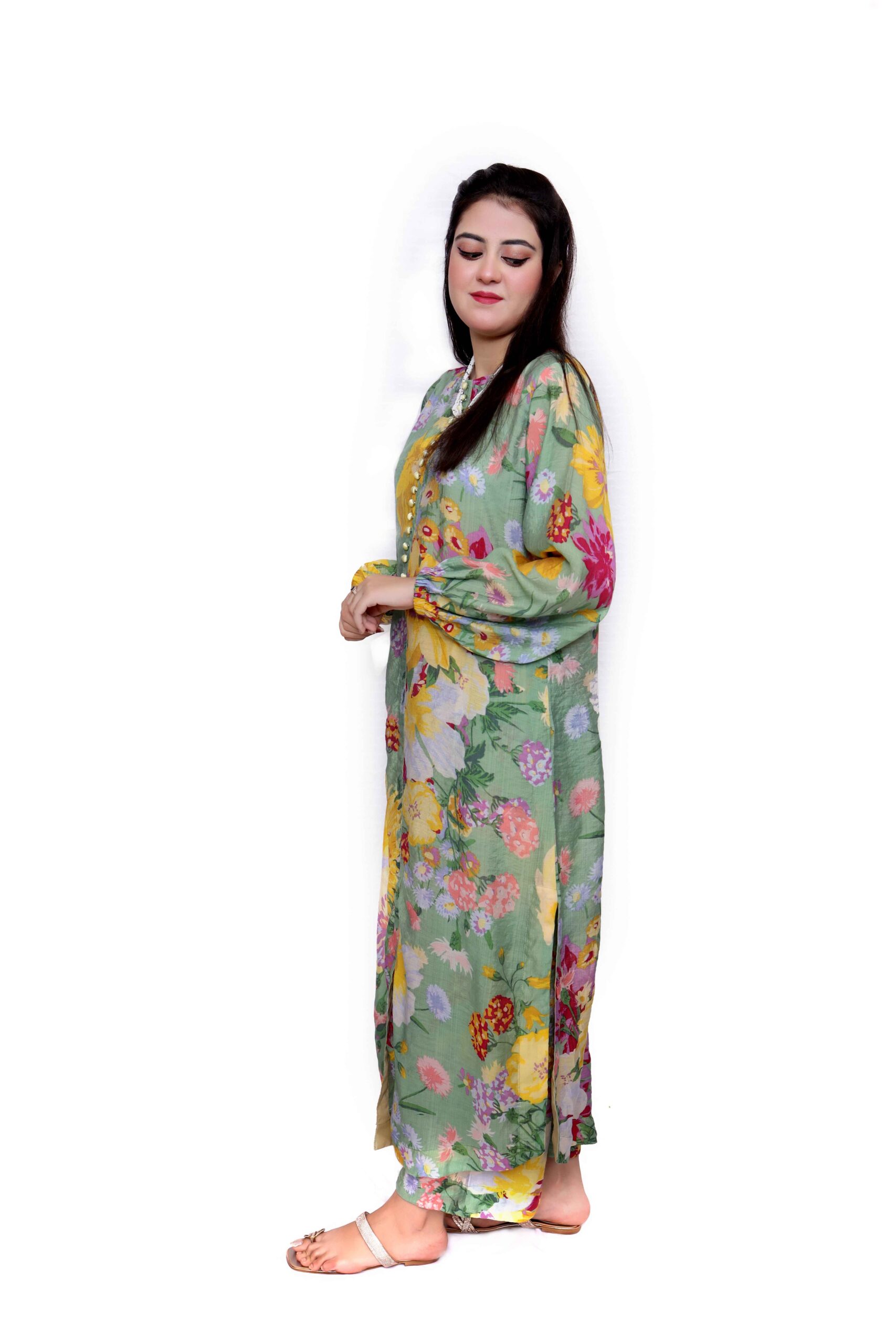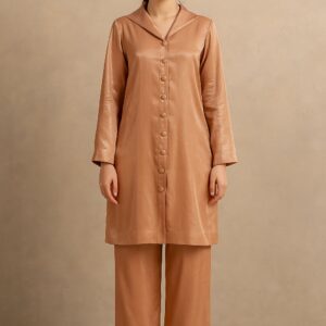 Brown Beige 2-Piece Pure Korean Silk Co-ord Set